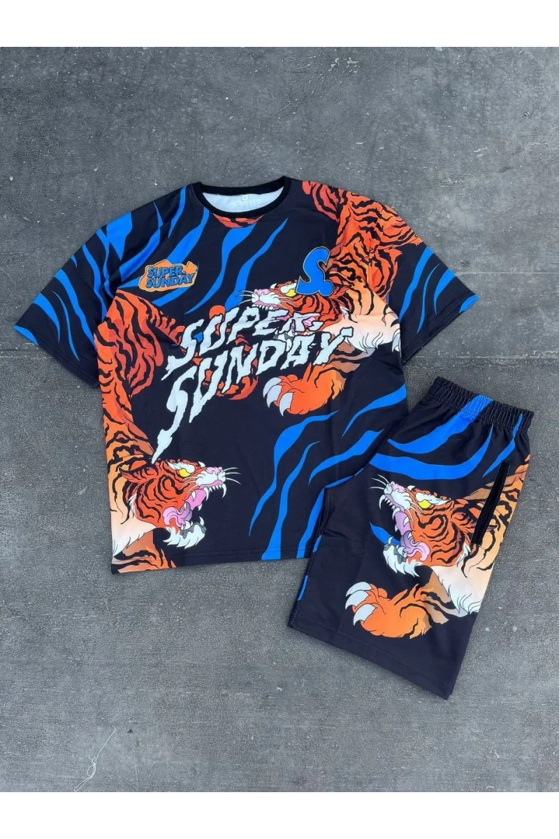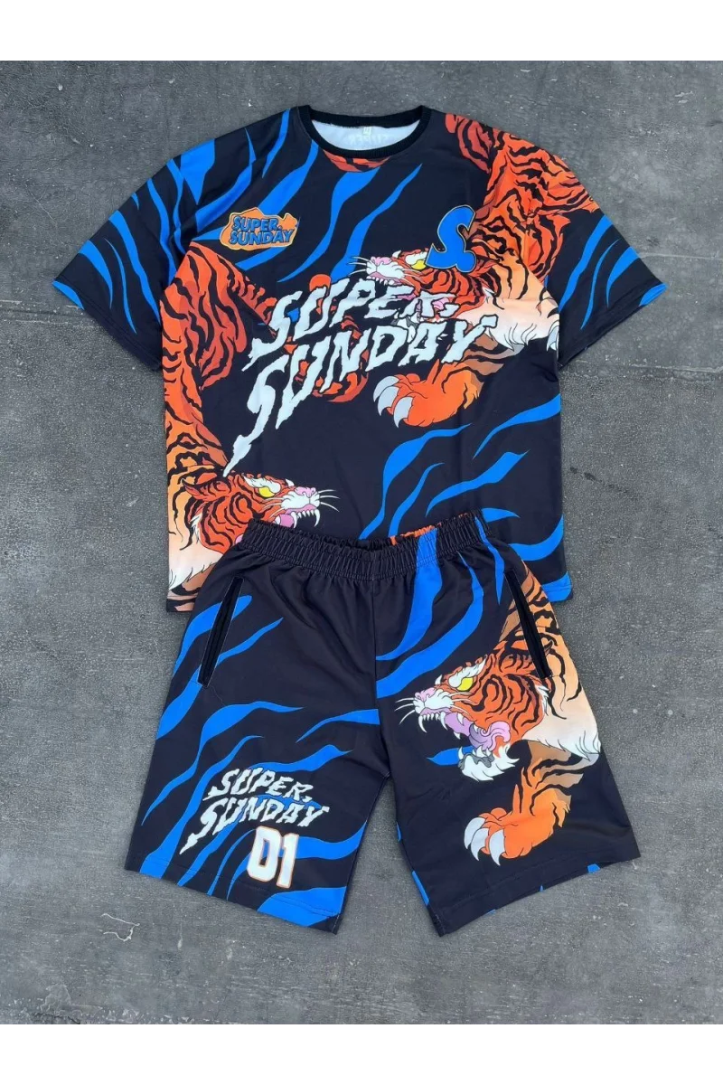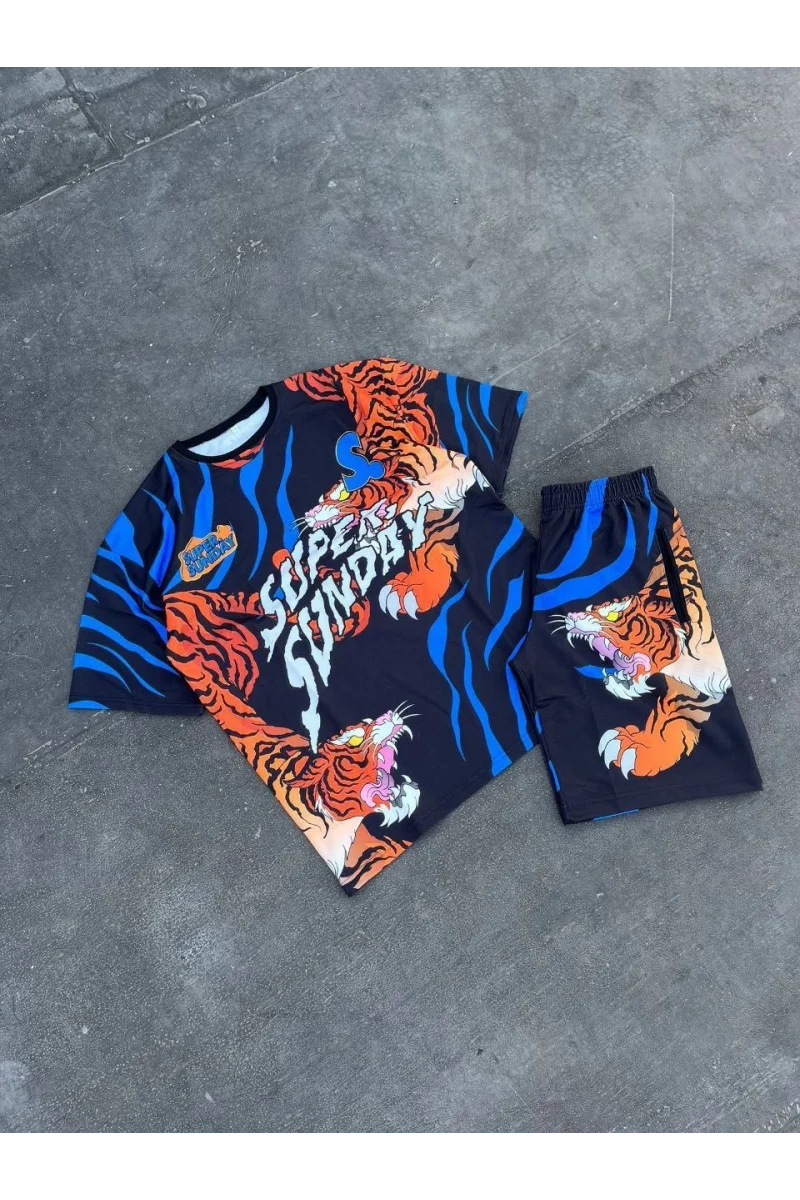 Erkek Dijital Baskılı Şortlu Takım - Mavi