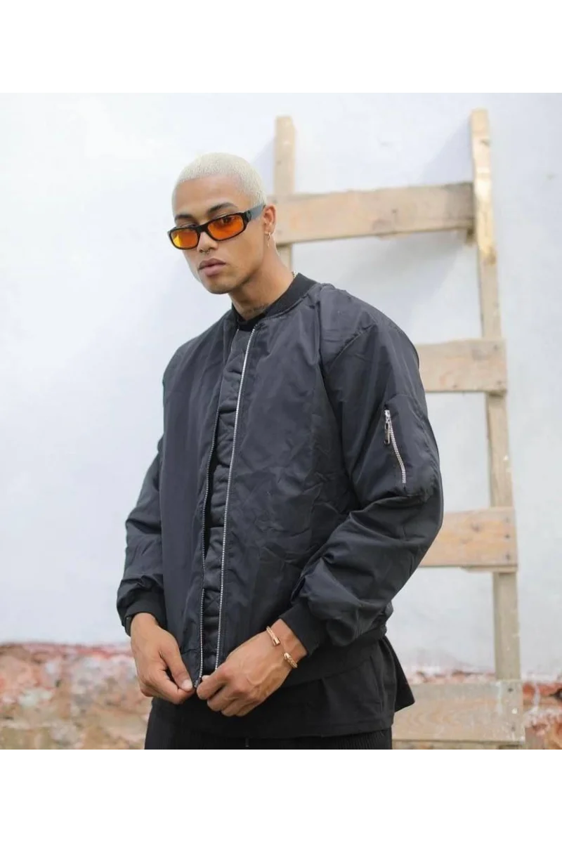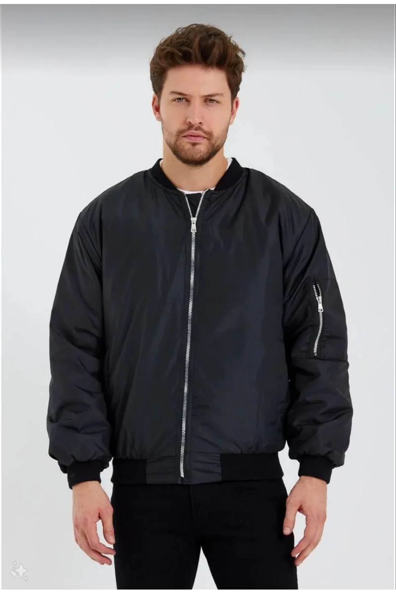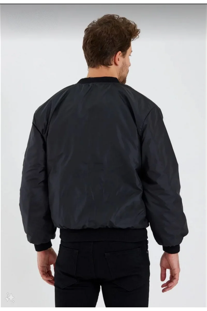Erkek Düz Bomber Ceket - Siyah