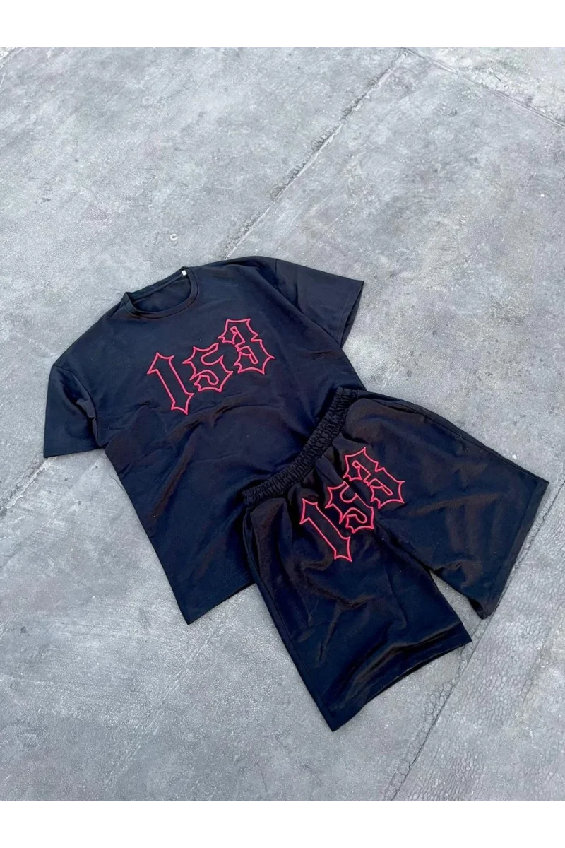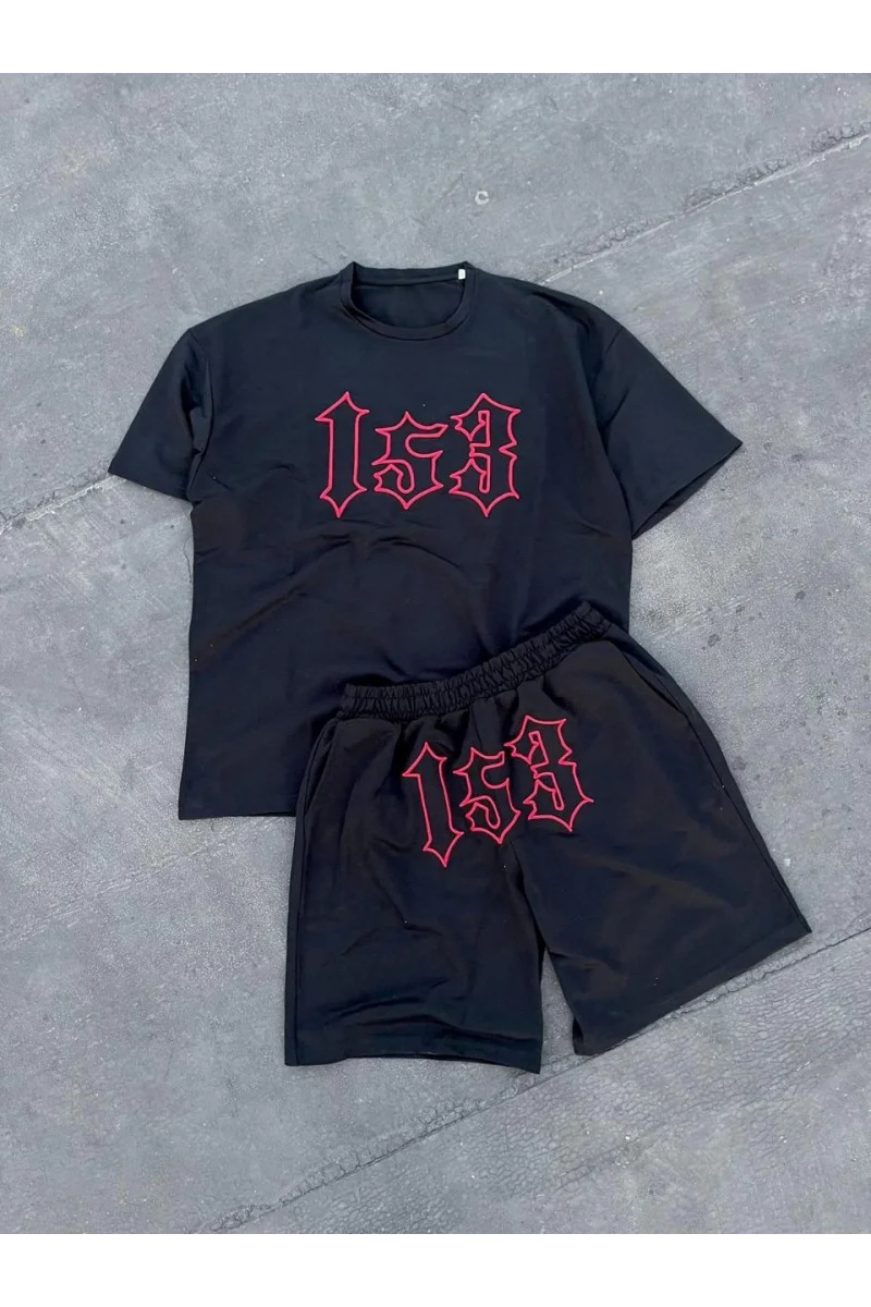 Erkek Nakış İşlemeli Şortlu Takım - Siyah