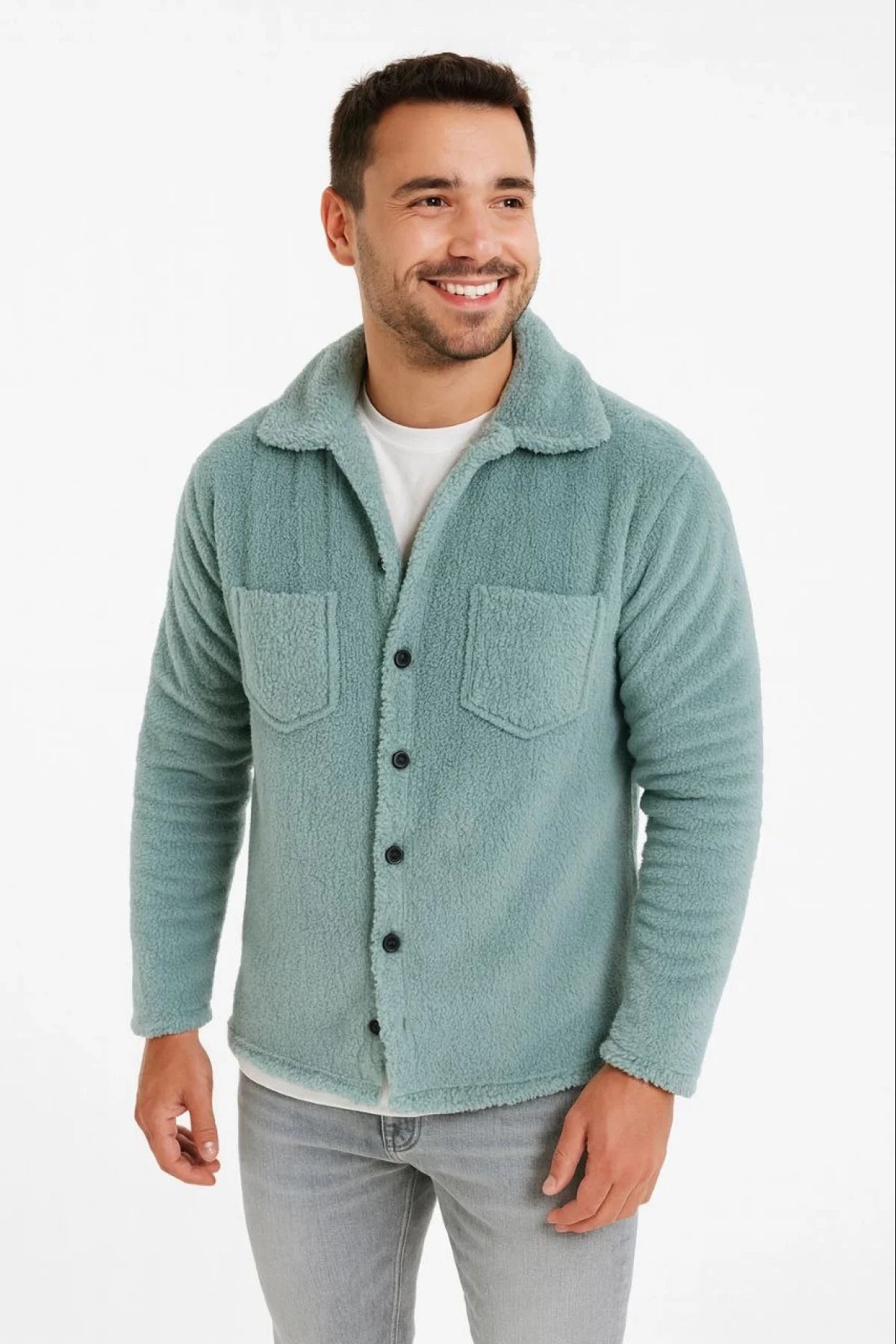 Erkek Pelüş Polar Hırka Gömlek – Yakalı, İlik Düğmeli, Göğüs Cepli, Yumuşak Dokulu Kışlık Regular Fit Rahat Günlük Model