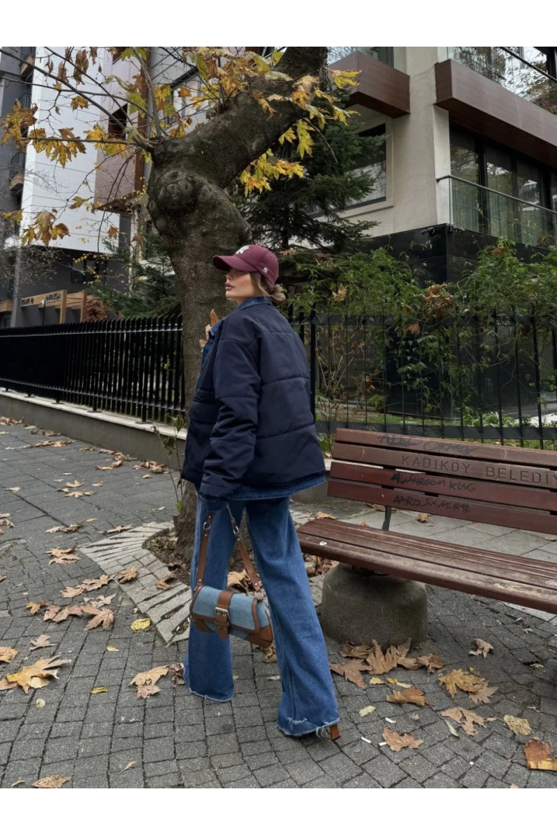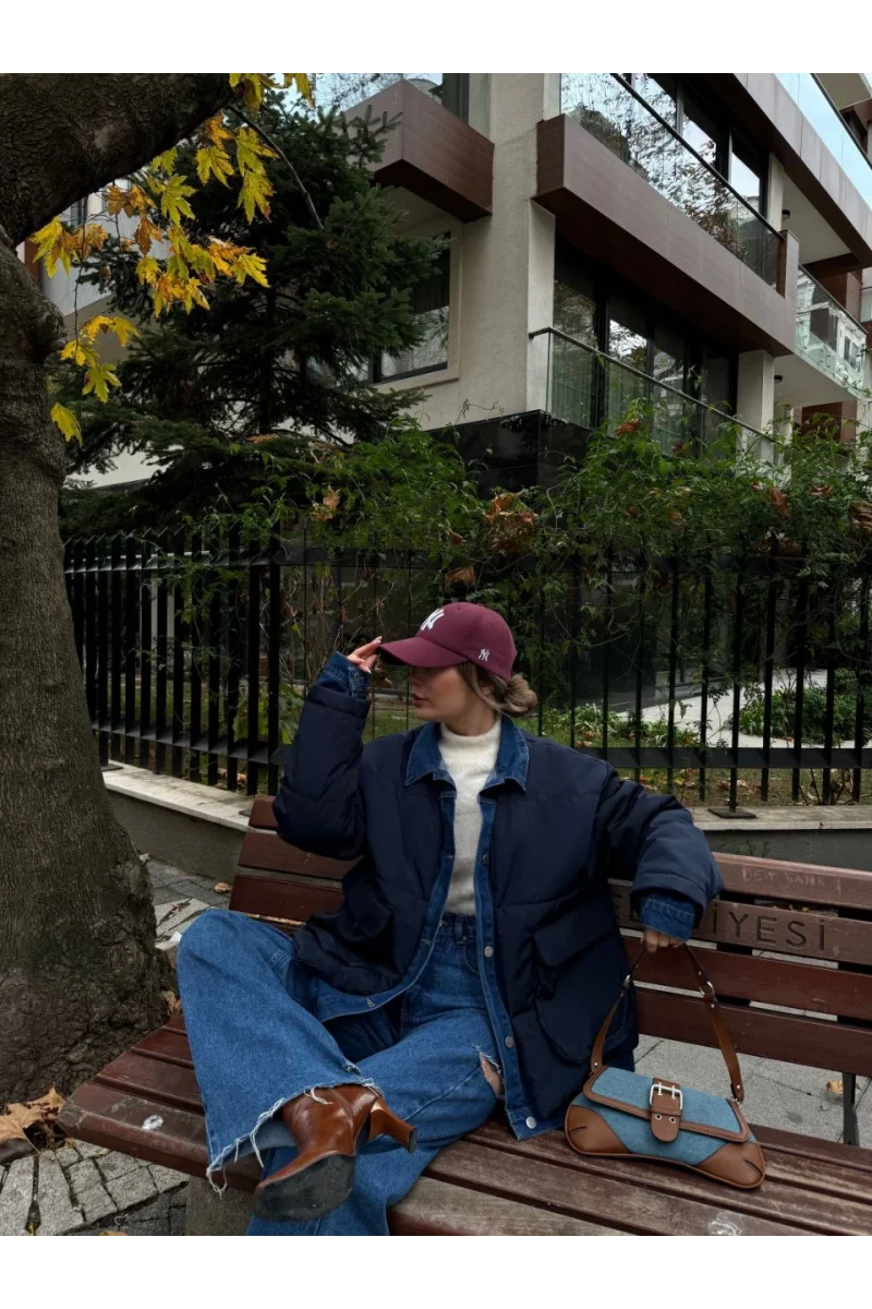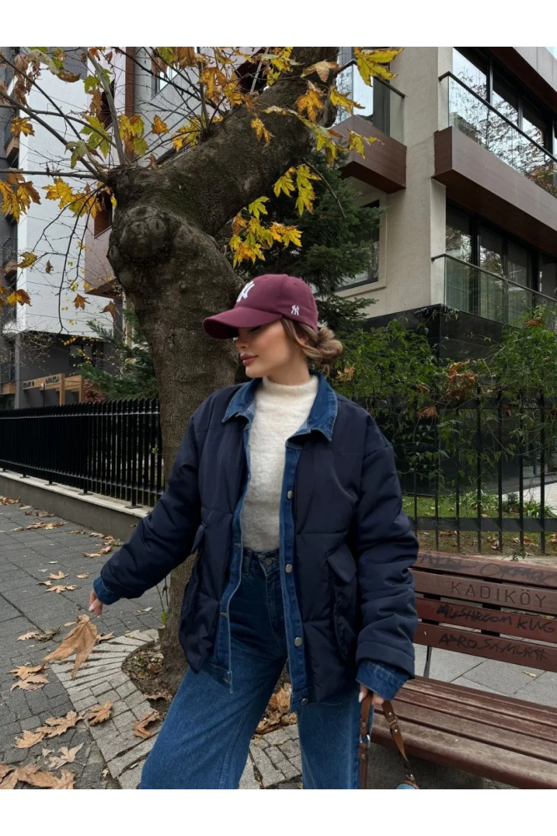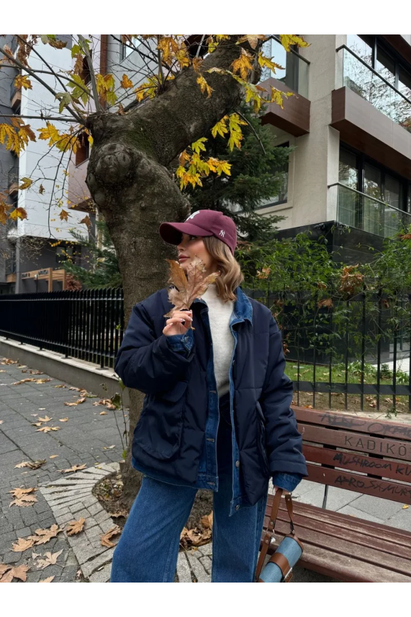 Jeans Detaylı Cıtcıtlı CEKET - Lacivert