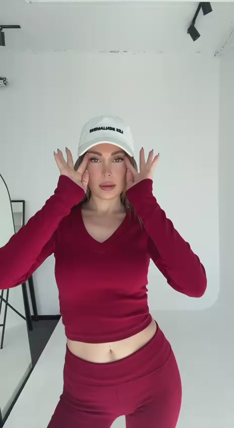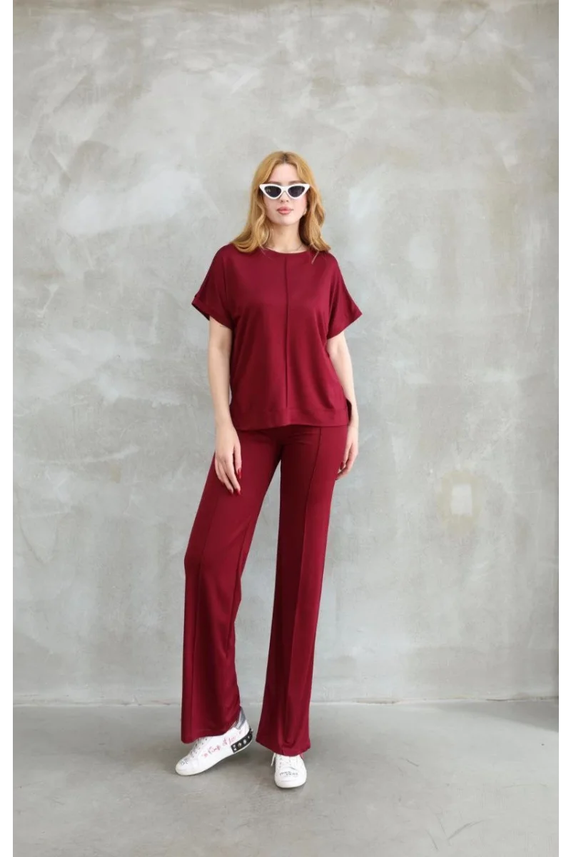 Osy Modal Yumuşak dokulu Kumaş Bisiklet Yaka Kısa Kollu Takım - Bordo