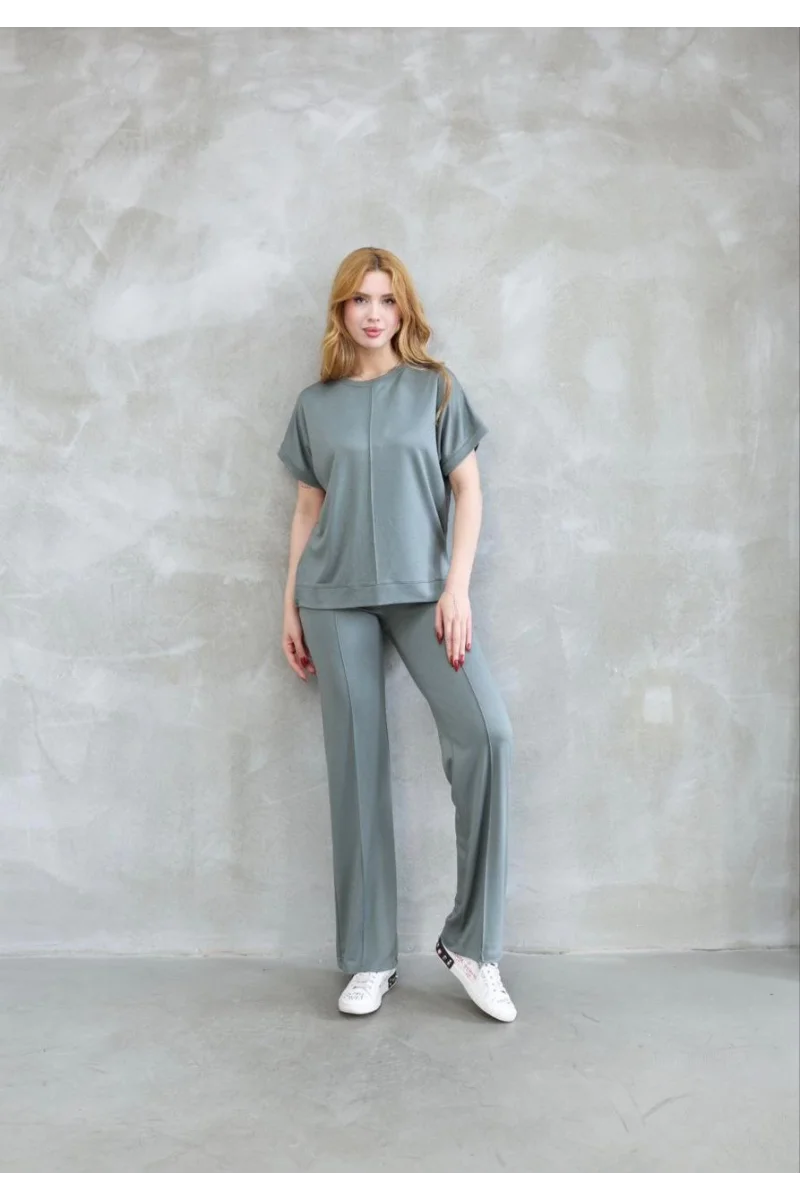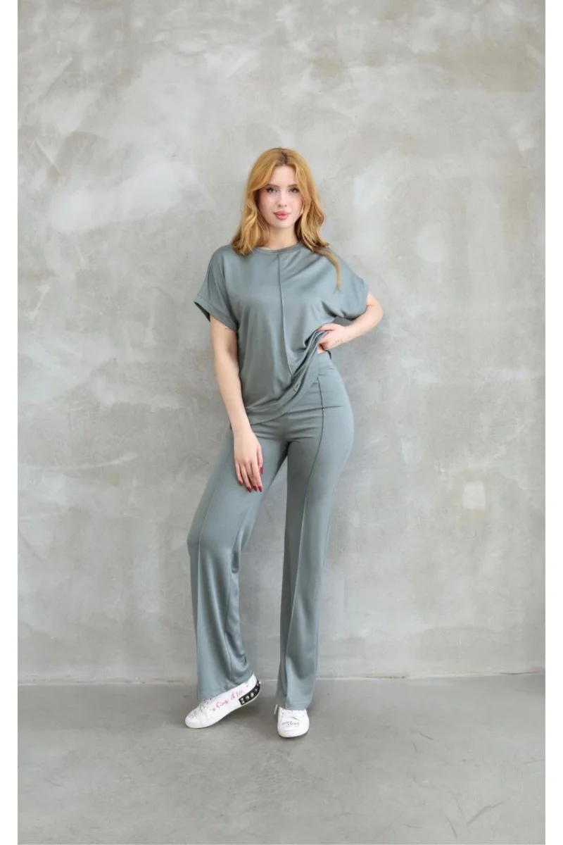 Osy Modal Yumuşak dokulu Kumaş Bisiklet Yaka Kısa Kollu Takım - Mint Yeşili