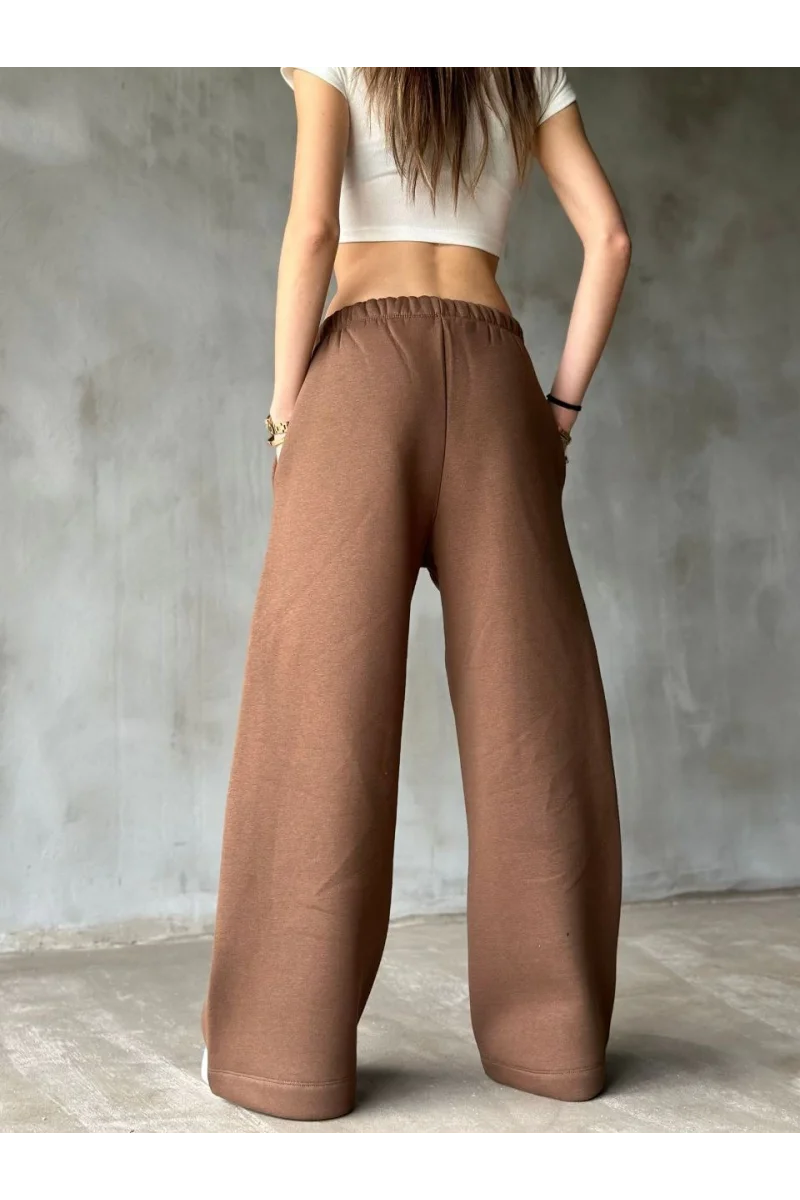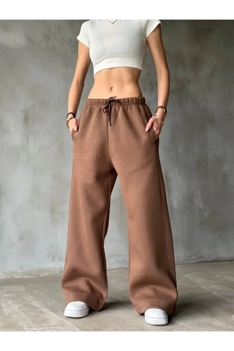 Palazzo Bol Paça Eşofman Pantolon - Kahve