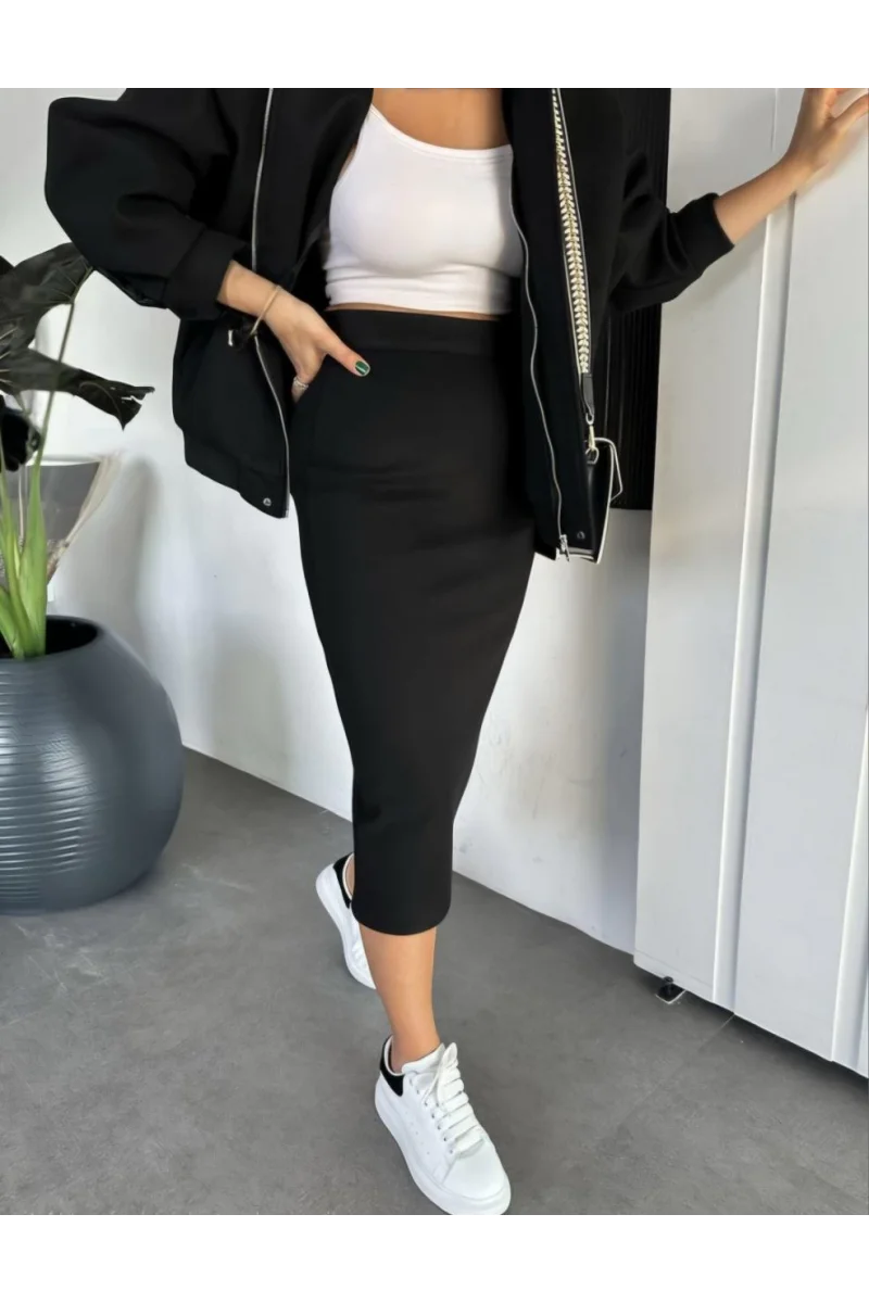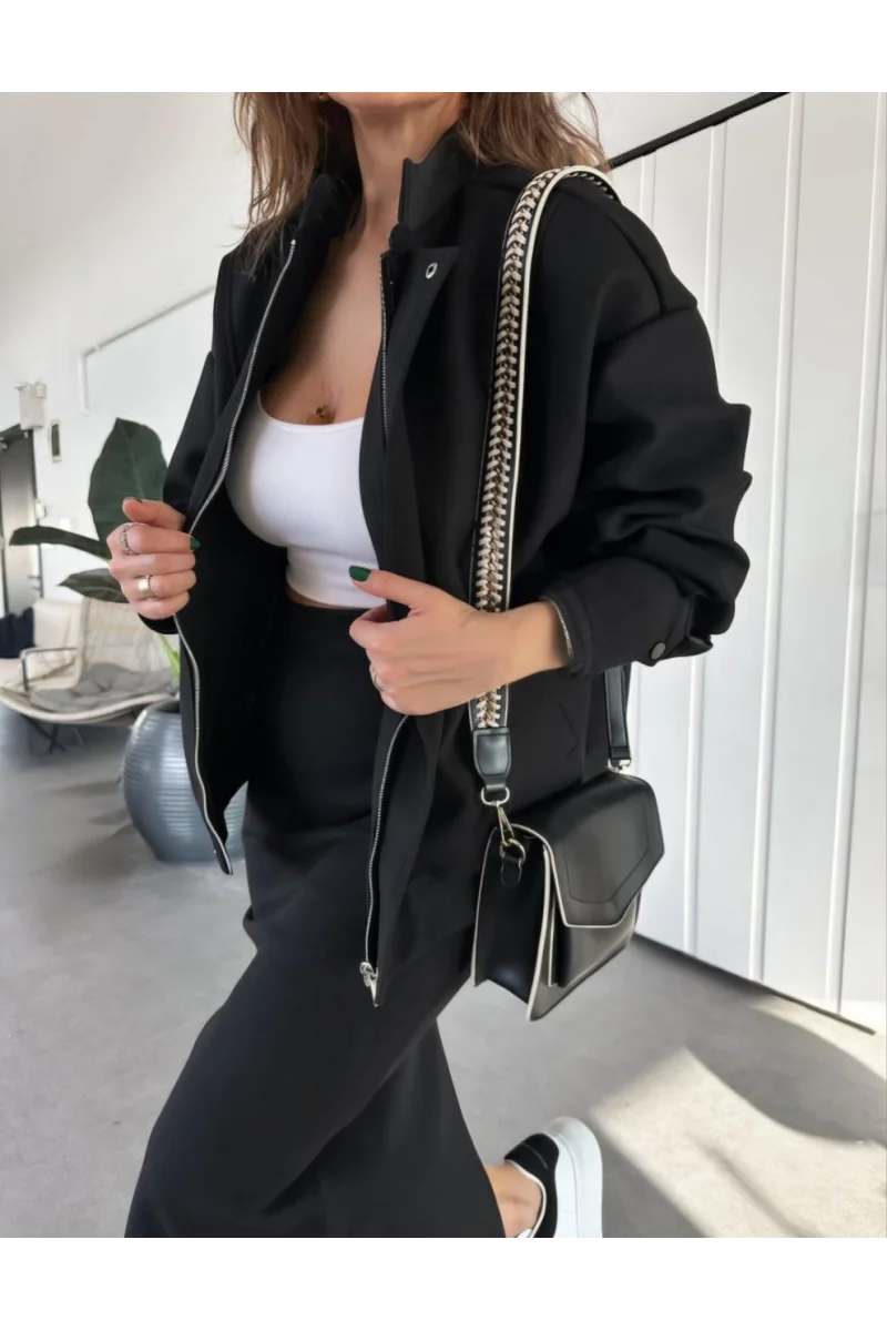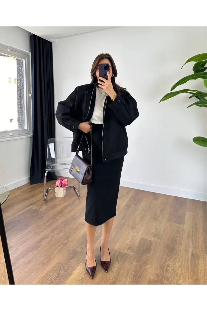 RYSE Kadın Mevsim Kaşe Fermuarlı Ceket Etek Takım Kaşmir Ceket Etekli İkili Takım Kaşe Bomber Ceket-Etek Takım