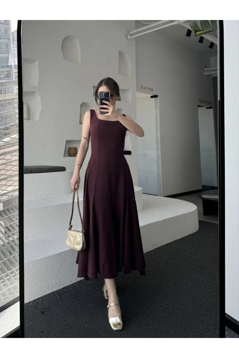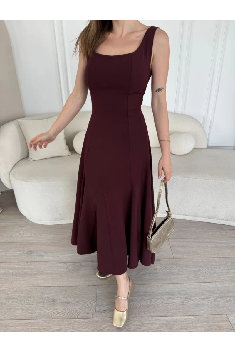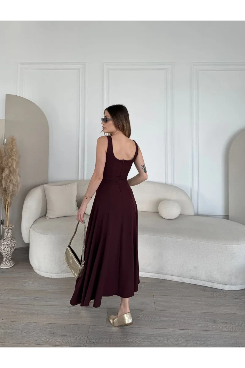 Sırt Dekolteli Kolsuz Uzun Elbise - Mürdüm