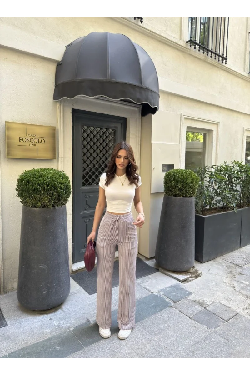 Su Yolu Çizgili kolay Kombinle Ne Bilir Cepli Pantolon - Bordo