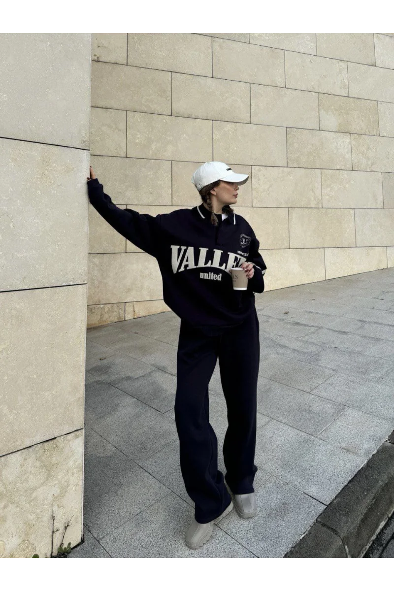 Üç İplik Yakalı Sweat Baggy Pantalonlu Takım - Siyah