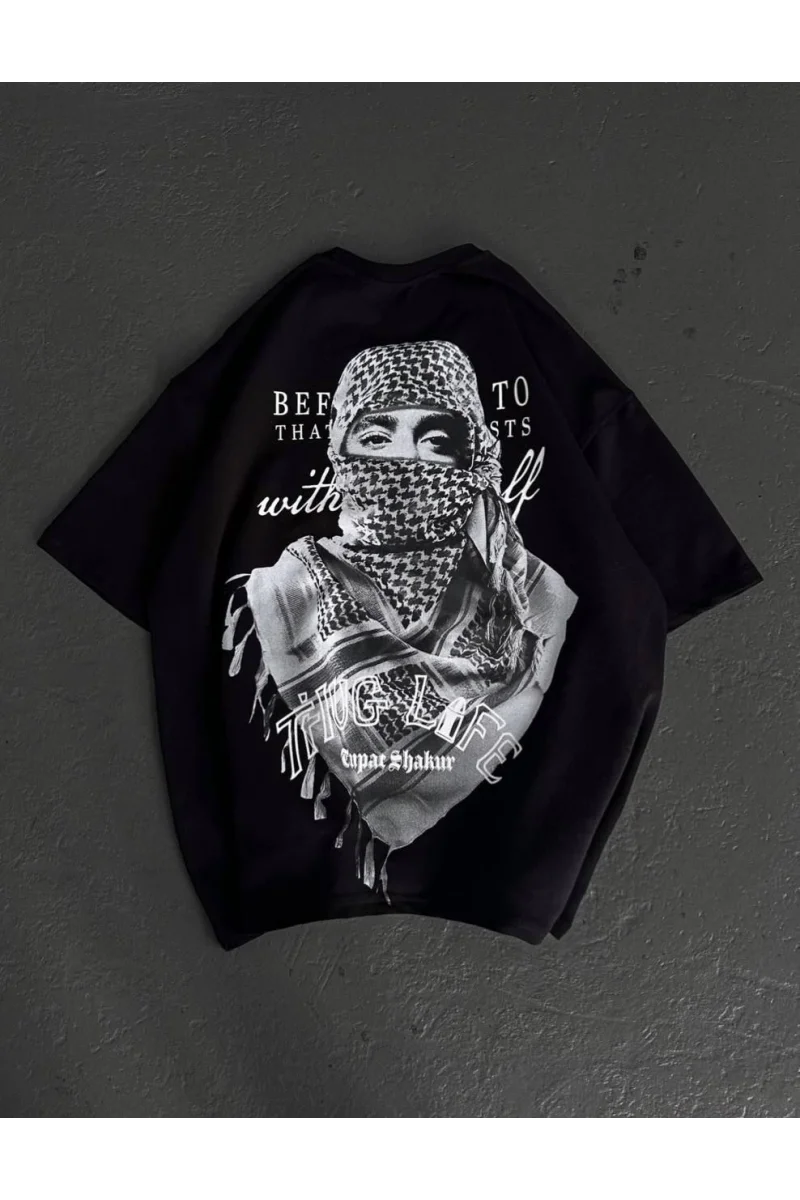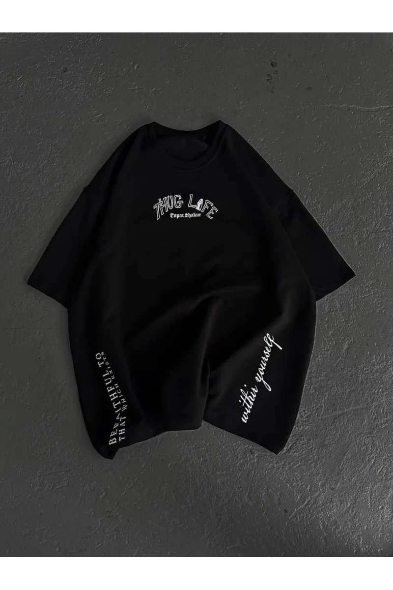 Unisex Baskılı Oversize T-Shirt - Siyah