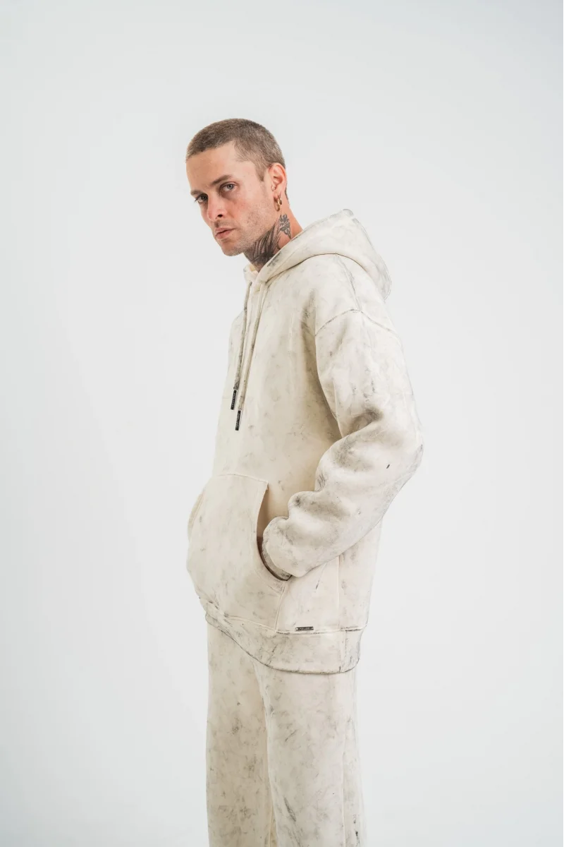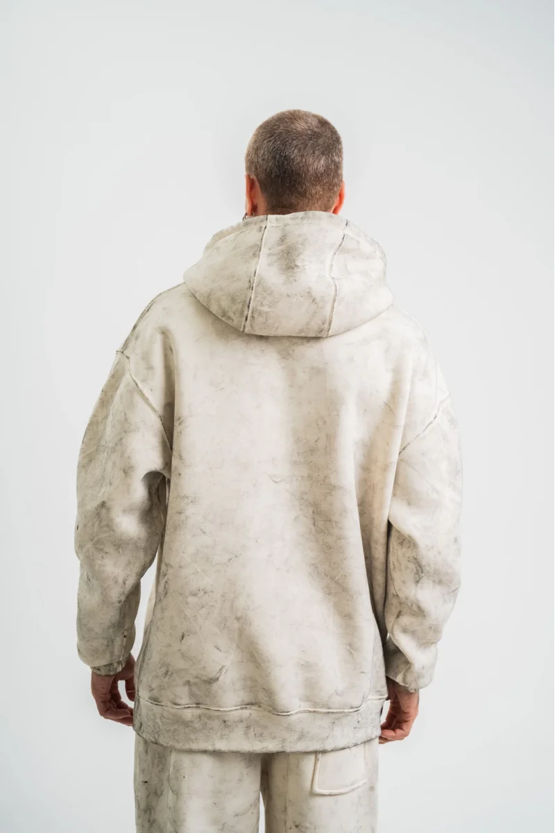Unisex Double Oversize Kapşonlu Yıkamalı SweatShirt - Krem