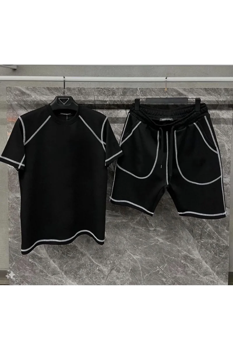 Unisex Karoyaka Dikişli Şortlu Takım - Siyah
